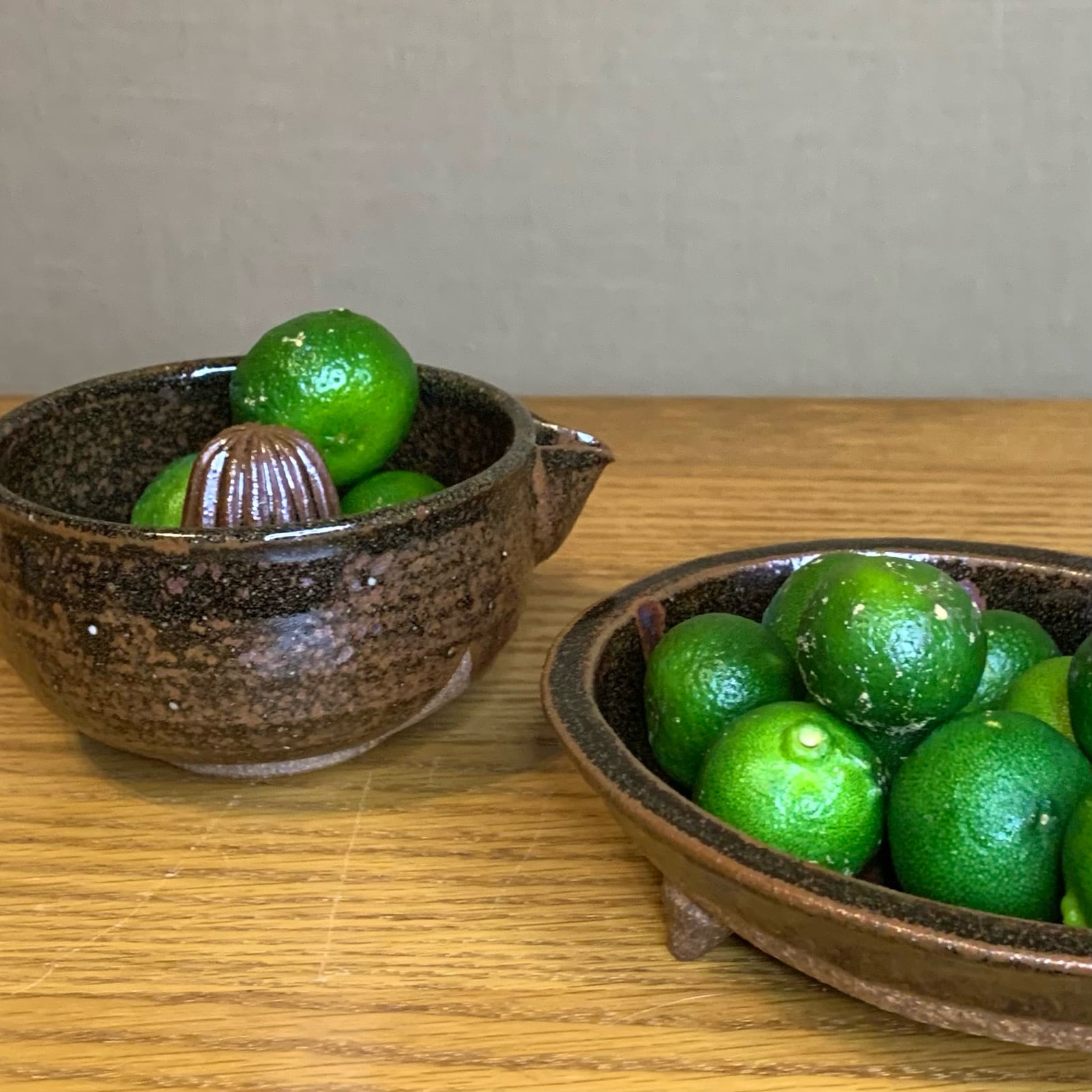 小型の柑橘の果汁をまとめて搾るために4寸の片口に搾るための突起を付けたシークワサー搾り。