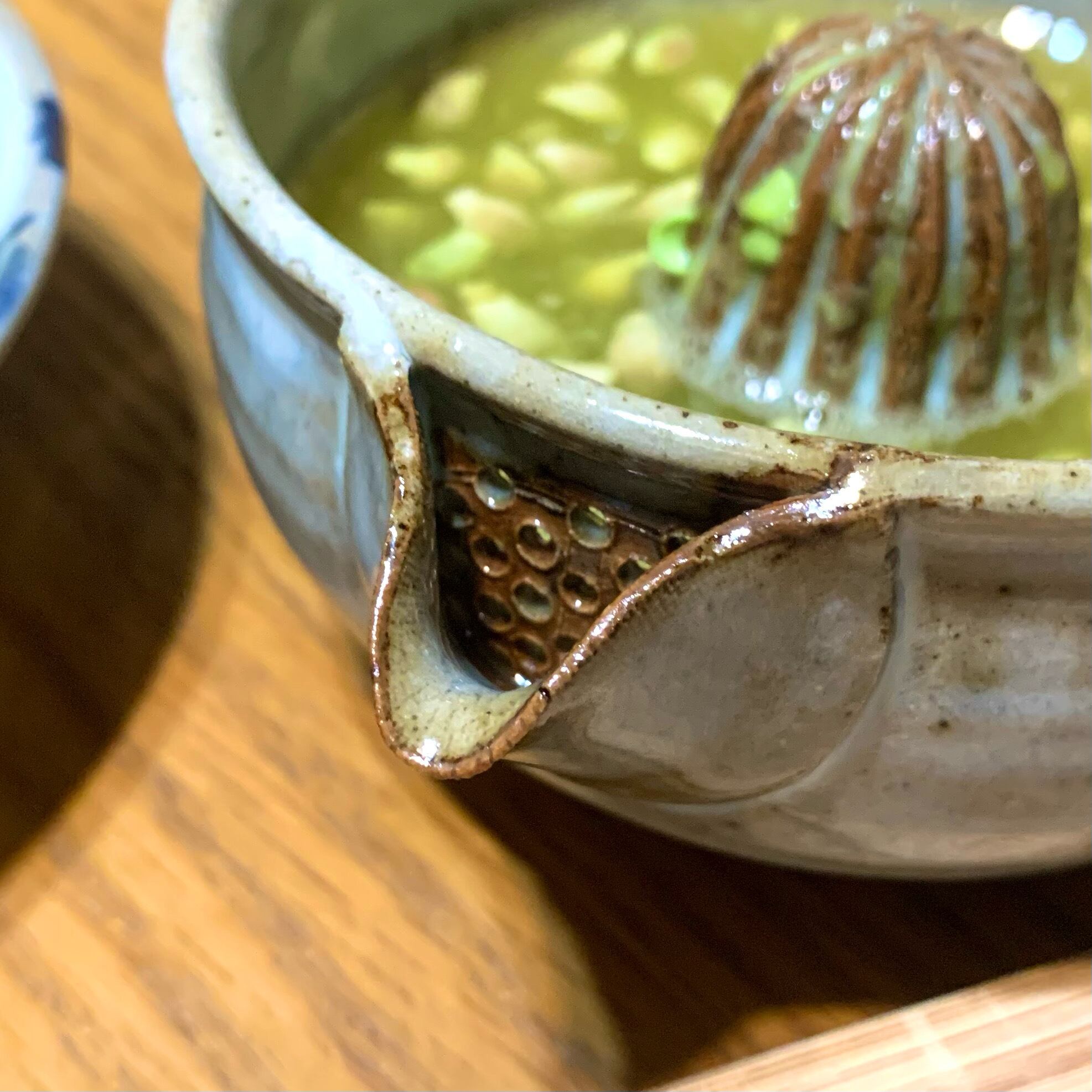 小型の柑橘の果汁をまとめて搾るために4寸の片口に搾るための突起を付けたシークワサー搾り。