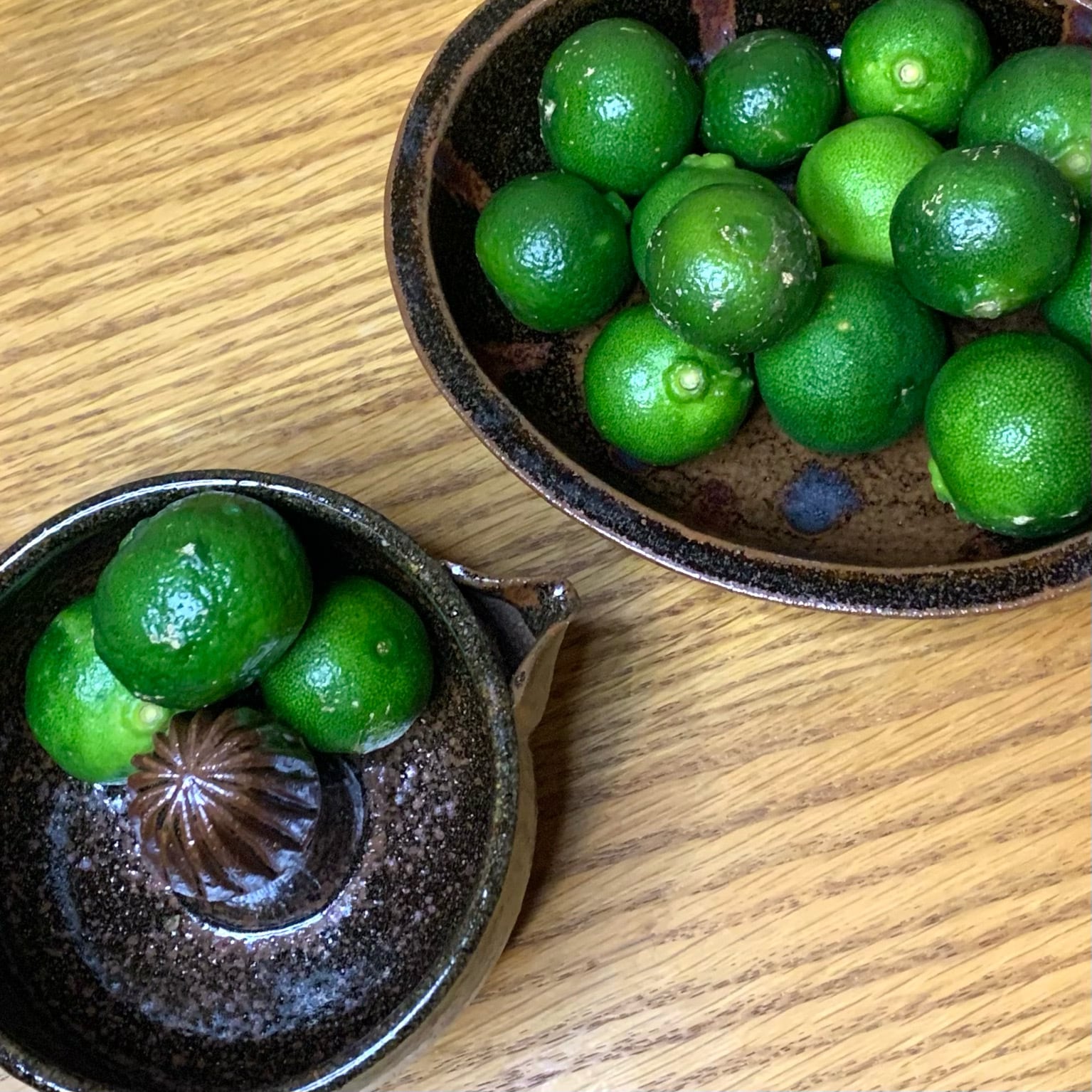 小型の柑橘の果汁をまとめて搾るために4寸の片口に搾るための突起を付けたシークワサー搾り。