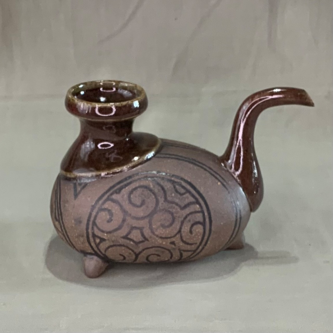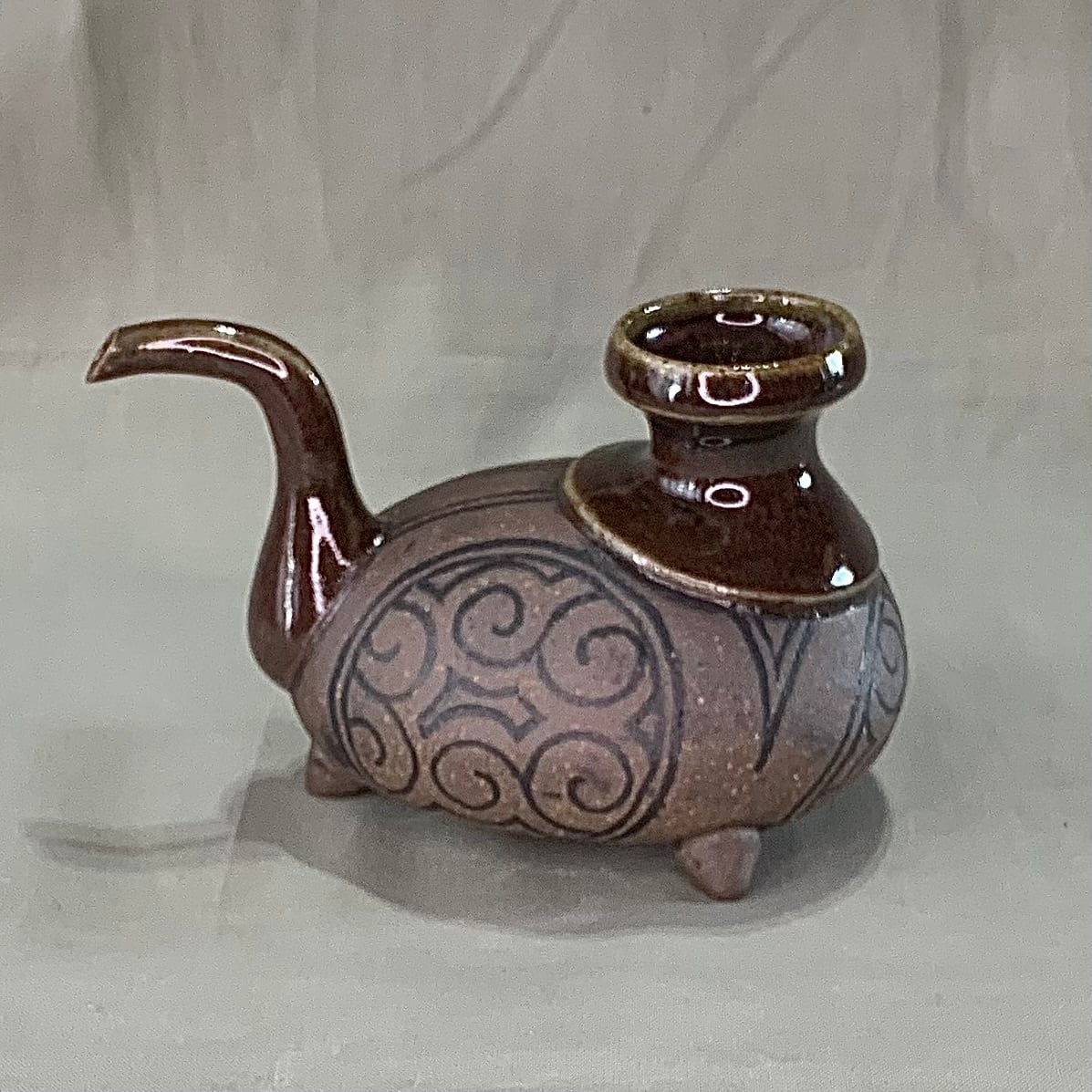 オリベ釉黒象嵌3本足のカラカラ(一合)を販売します。