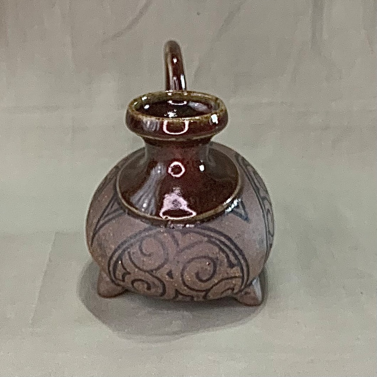 オリベ釉は窯変で部分的に小豆色に発色しています。