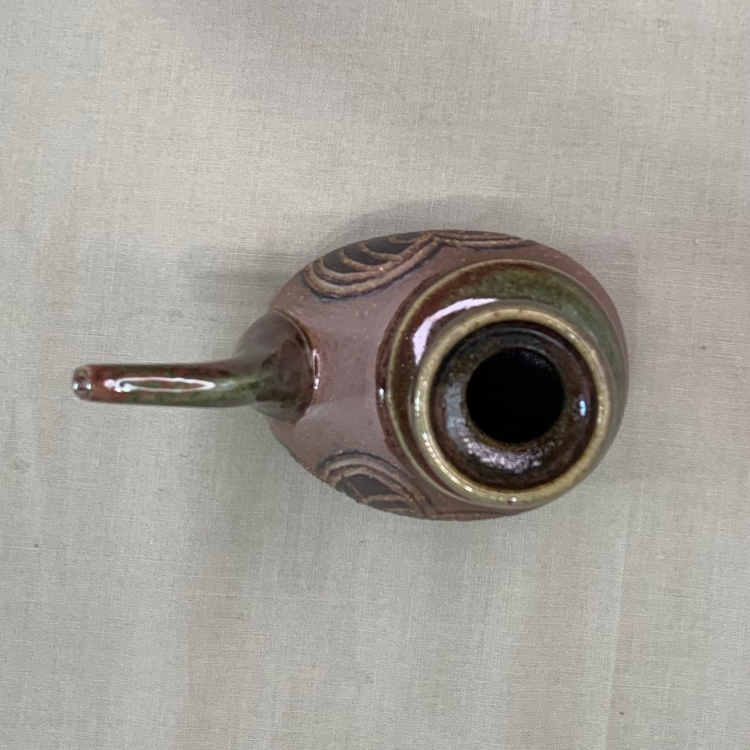 オリベ釉は窯変して部分的に小豆色に発色しています。