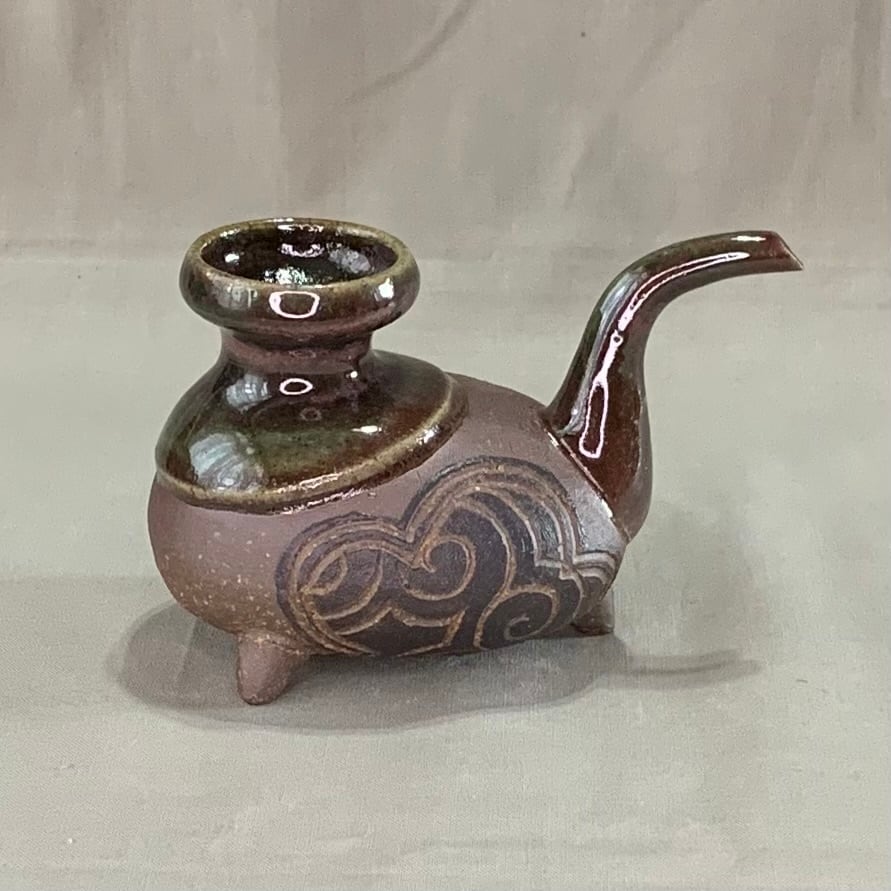 オリベ釉ヤキシメ線彫3本足のカラカラ(半合)を販売します。