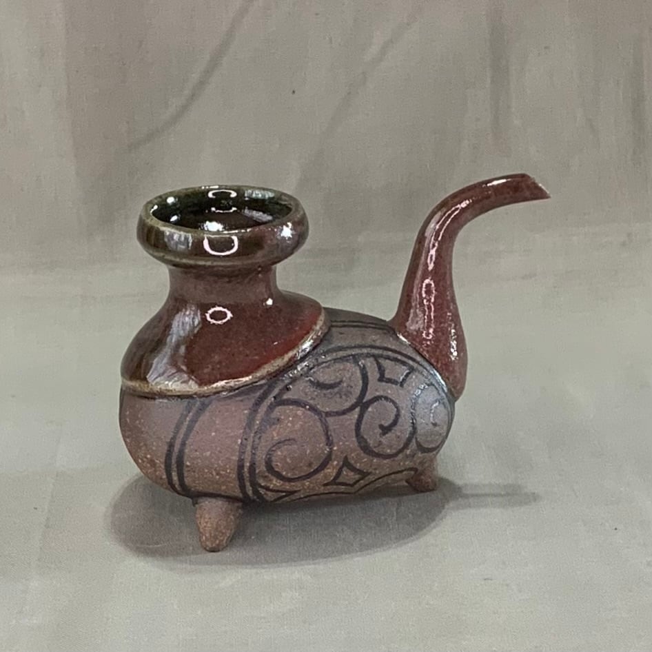 カラカラとは沖縄の伝統酒-泡盛を飲む際に使われる酒器です。特に古酒などの香りや味わいを少しずつ楽しむスタイルに合わせて制作したのが3本足のカラカラです。半合は貴重な古酒を無駄なくそして色々と楽しめればと作ったサイズです。