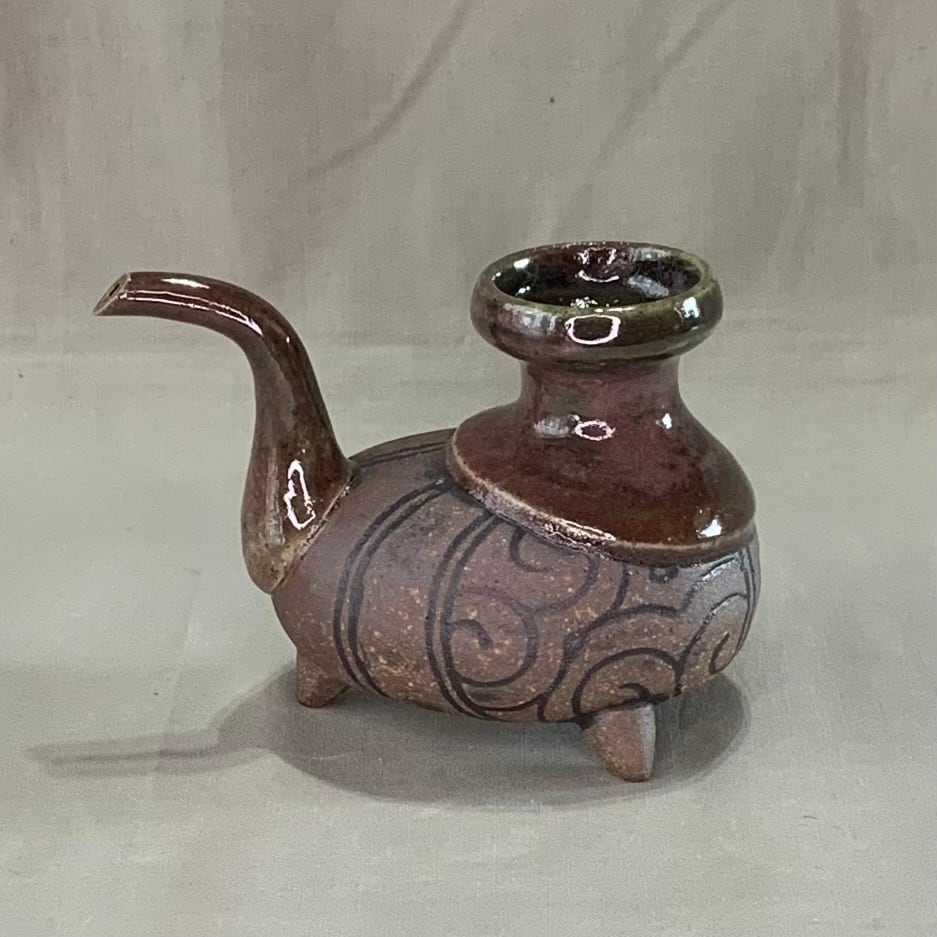 オリベ釉黒象嵌3本足のカラカラ(半合)を販売します。