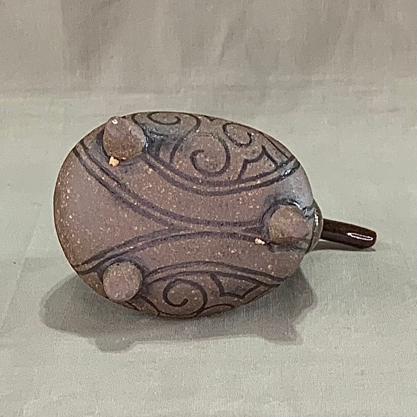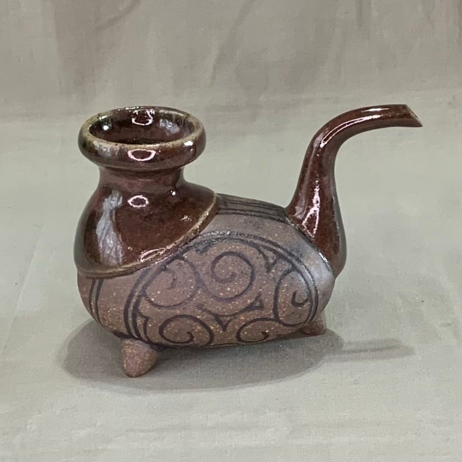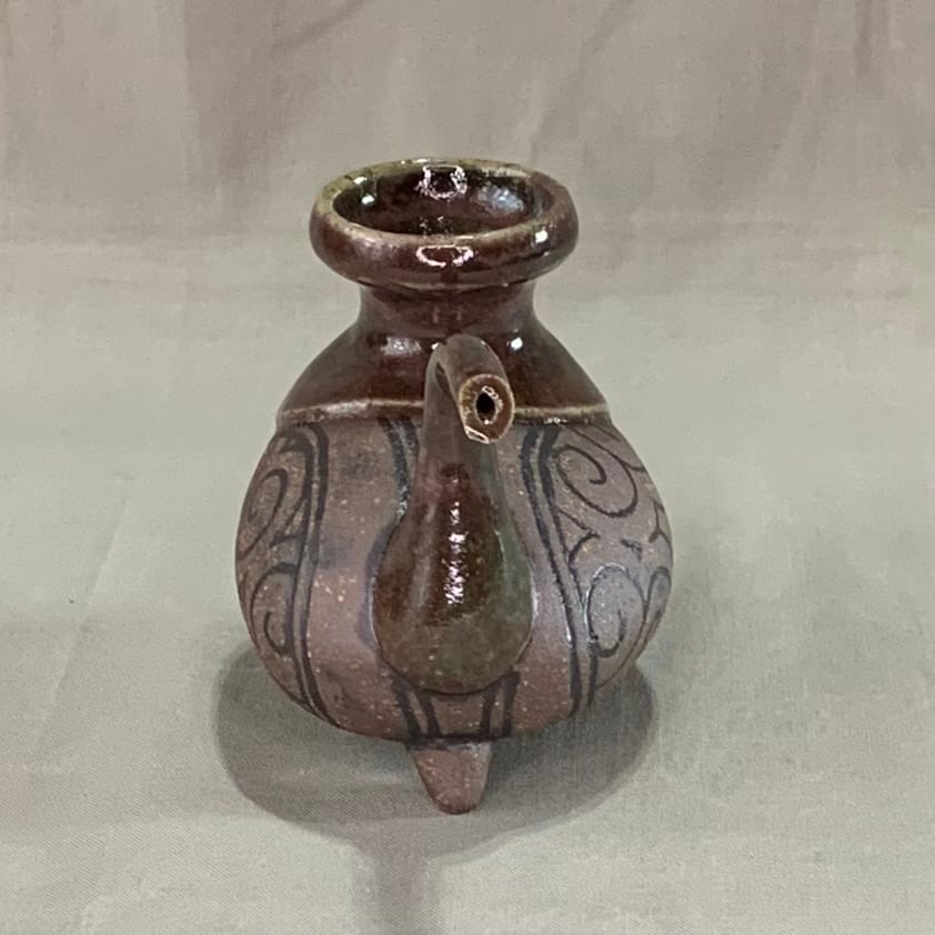 オリベ釉黒象嵌3本足のカラカラ(半合)を販売します。