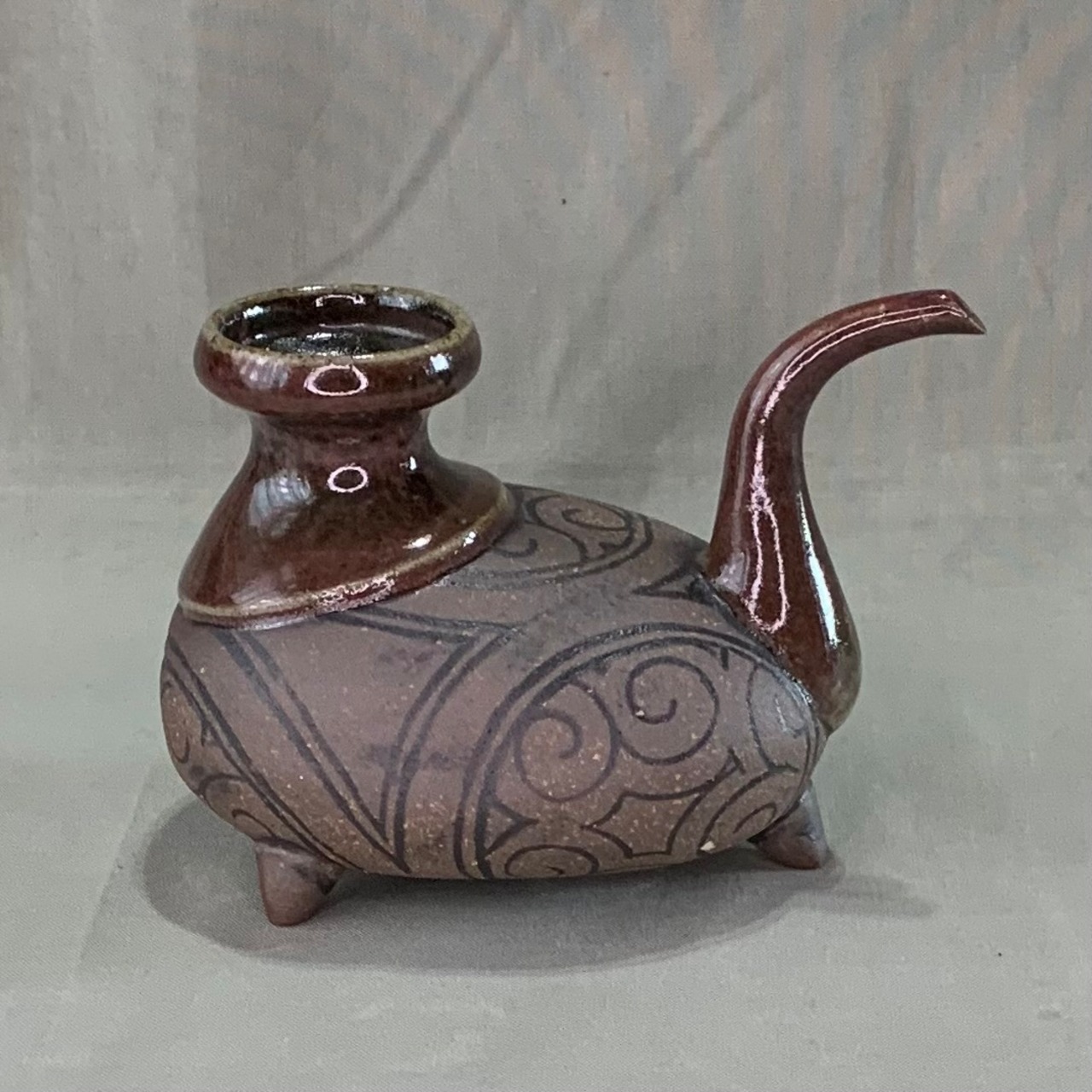オリベ釉黒象嵌3本足のカラカラ(一合)を販売します。