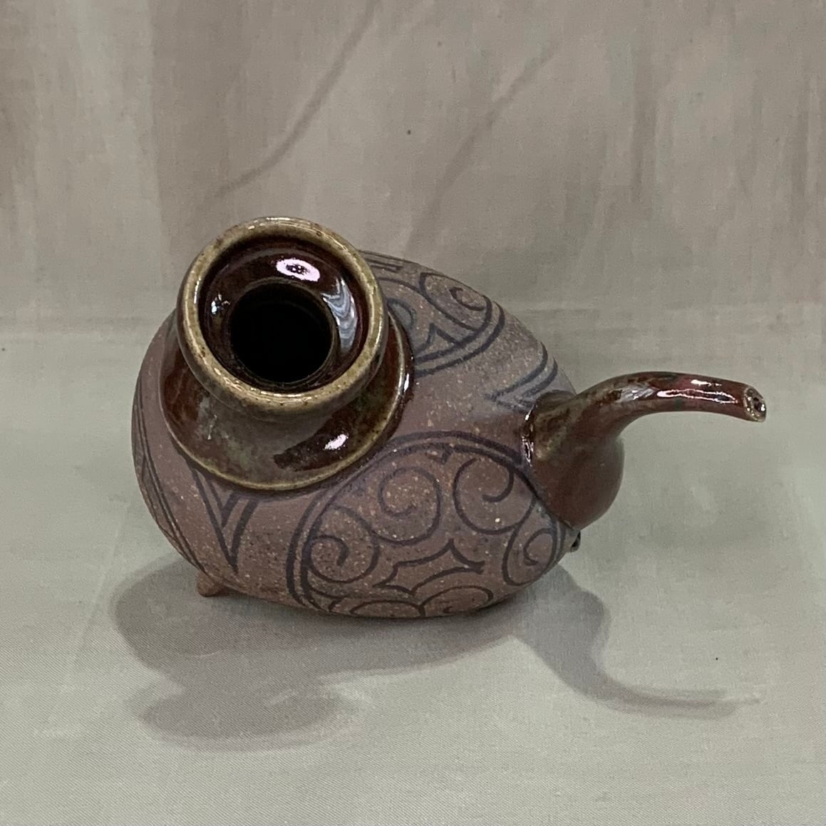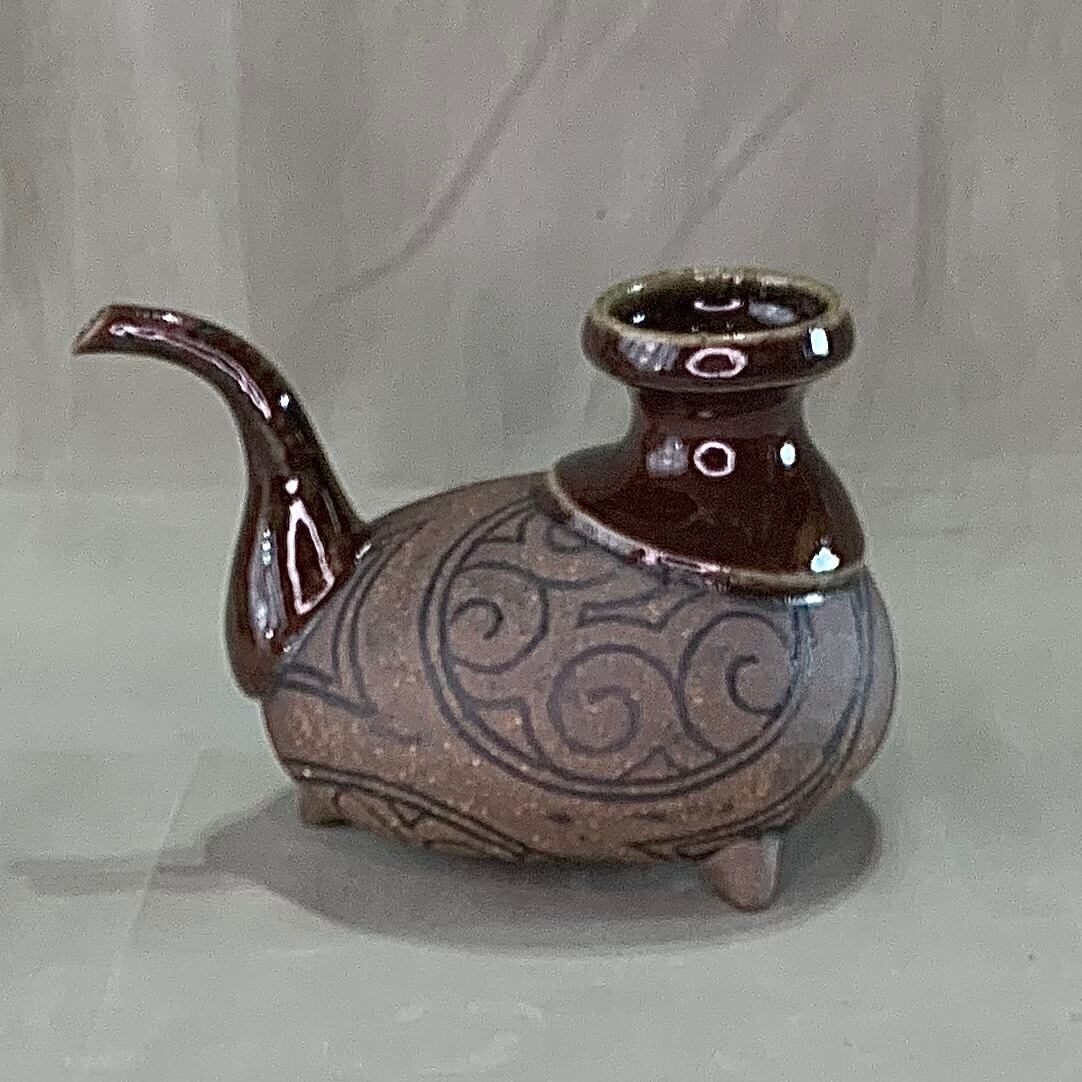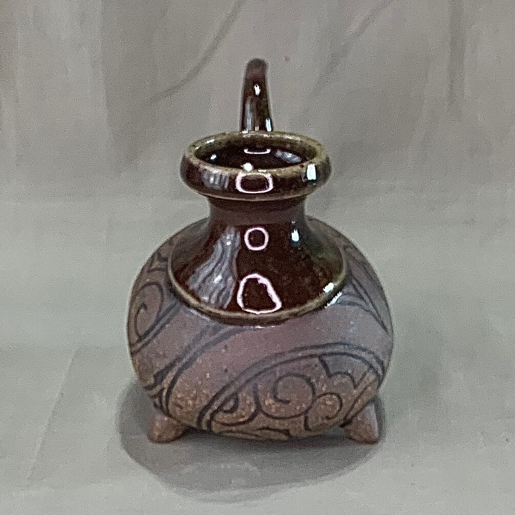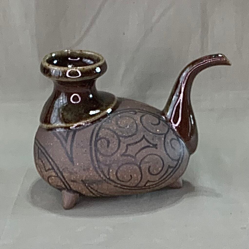 オリベ釉黒象嵌3本足のカラカラ(一合)を販売します。